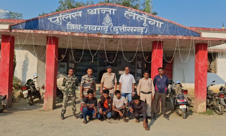 रायगढ़। दिनांक 07.11.2025 को थाना लैलूंगा में स्थानीय किशोर बालिका द्वारा अपने परिजनों के साथ आकर दुष्कर्म की रिपोर्ट दर्ज कराई गई। बालिका ने बताया कि दिनांक 06.11.2025 की रात्रि वह अपने परिचित युवक के साथ पहाड़लुड़ेग मेला देखने गई थी, इसी दौरान रास्ते में दो मोटरसाइकिल पर सवार चार युवकों ने उन्हें रोका, चारों ने उसके साथ रहे युवक को डराकर मारपीट की और फिर एक आरोपी ने बालिका के साथ रहे युवक को दूर ले गया तथा तीन लड़कों ने उसके साथ दुष्कर्म किया।घटना की गंभीरता को देखते हुए पुलिस अधीक्षक रायगढ़ दिव्यांग पटेल लैलूंगा पहुंचे। उनके निर्देशन एवं एसडीओपी धरमजयगढ़ सिद्दांत तिवारी के मार्गदर्शन में थाना लैलूंगा, घरघोड़ा और कापू पुलिस की संयुक्त टीम गठित कर आरोपियों की पतासाजी एवं गिरफ्तारी हेतु लगाया गया। संयुक्त टीम द्वारा तत्परता से कार्यवाही करते हुए महज 12 घंटे के भीतर चारों आरोपियों को गिरफ्तार कर लिया गया तथा आरोपियों की पहचान कार्यवाही बाद आरोपियों के मेमोरेंडम पर घटना में प्रयुक्त दो मोटरसाइकिलों को जब्त किया गया है। गिरफ्तार आरोपियों को थाना लैलूंगा के अपराध क्रमांक 292/2025 धारा 70 (2), 61 (2) (क), 115 (2) बी.एन.एस. में आज रिमांड पर भेजा गया है ।